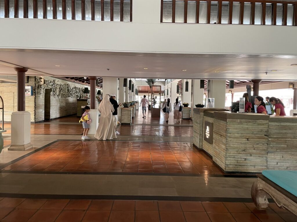 ロビーは高い天井と開放感のあるデザインで、南国リゾートらしい雰囲気を楽しめます。