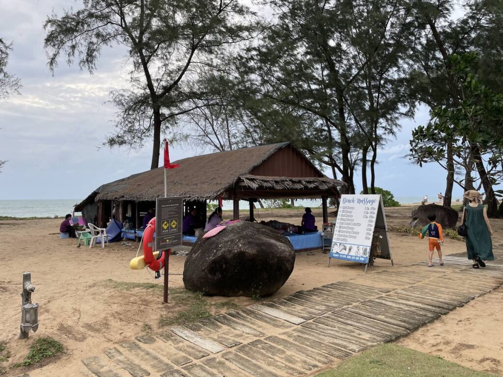 ビーチサイドにはマッサージ店があります。他にも象が歩いていたりと、タイ感が満載です。