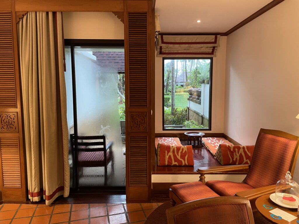 今回予約していたのは一番リーズナブルなカテゴリーの客室でしたが、プラチナ特典でガーデンアクセス付きのお部屋へアップグレードされました。お部屋から直接ガーデンに出られる造りで、開放感がありリゾート滞在にぴったり。